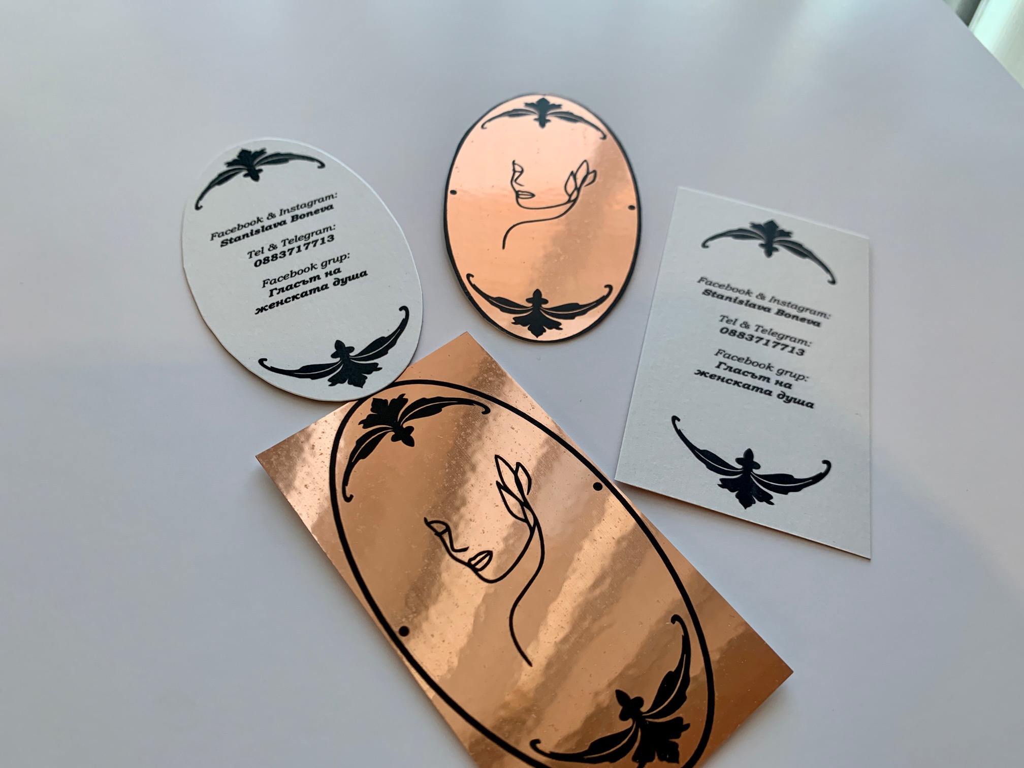 Разполагаме с висококачествени картони за дигитален печат с огледален ефект, като технологията позволява луксозна изработка на малки тиражи визитки, сертификати, грамоти или покани и др.