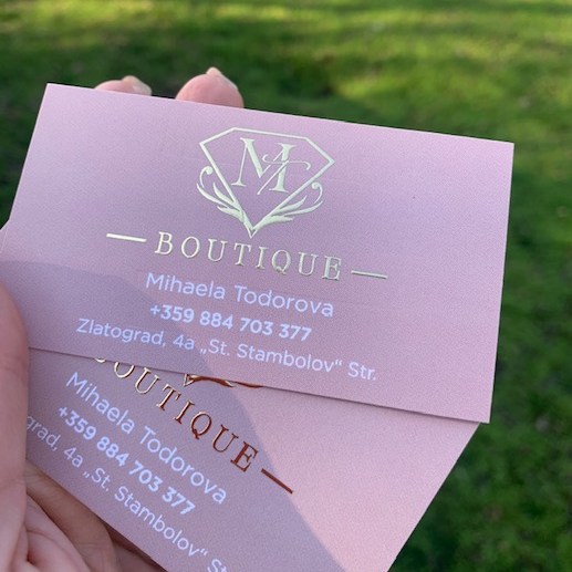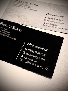 Ако желаете ефектни и запомнящис е визитки, вижте повече за визитките с релефен печат, злато, сребро, частичен лак Тук.