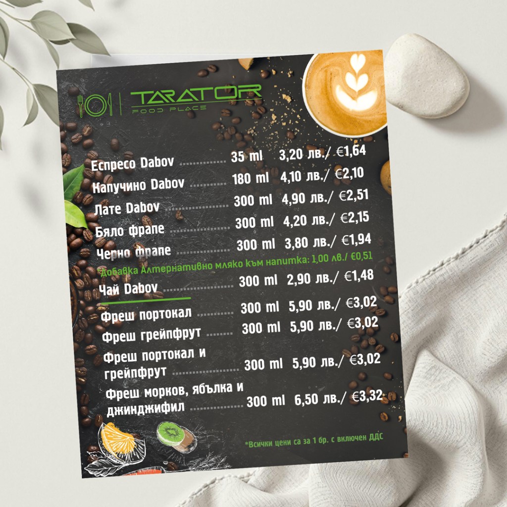 Цена за проект и печат до 2 бр. А4: €18 / 35,20 лв.